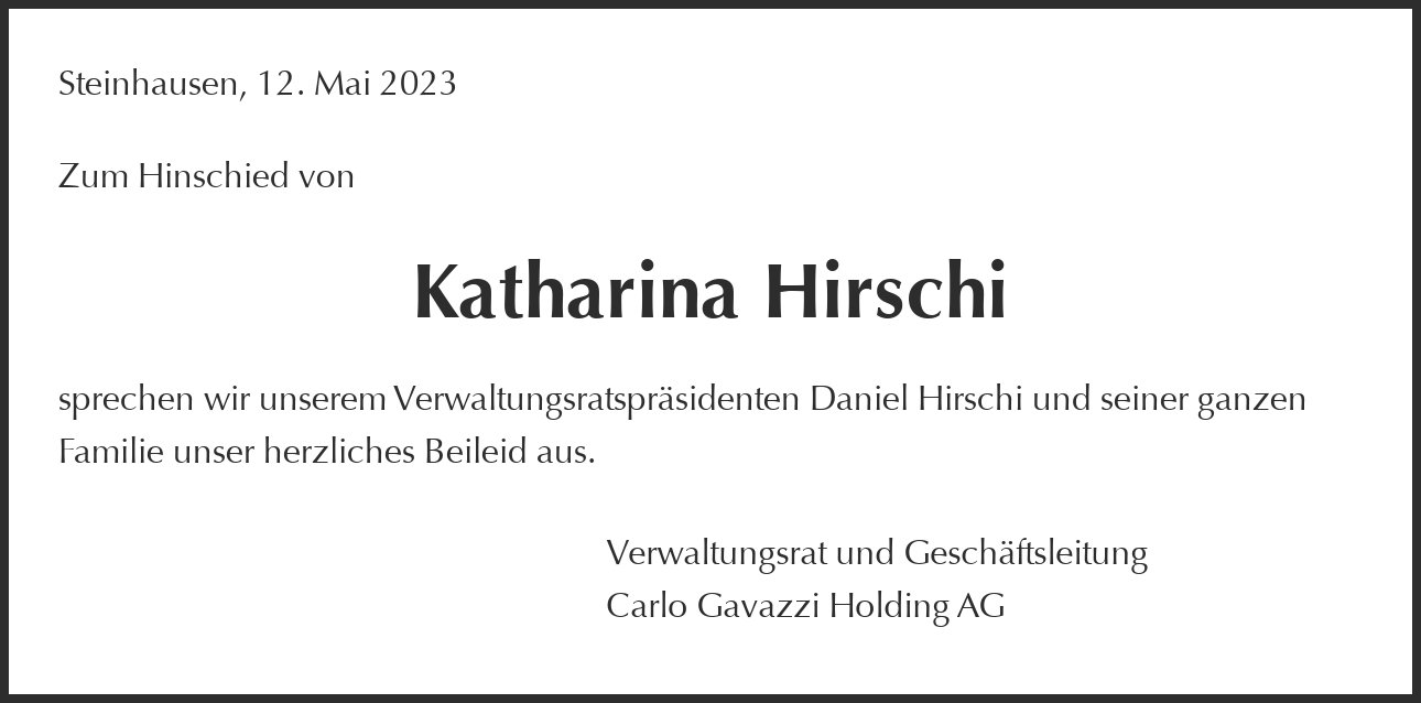 sprechen wir unserem Verwaltungsratspräsidenten Daniel Hirschi und seiner ganzen Familie unser herzliches Beileid aus.